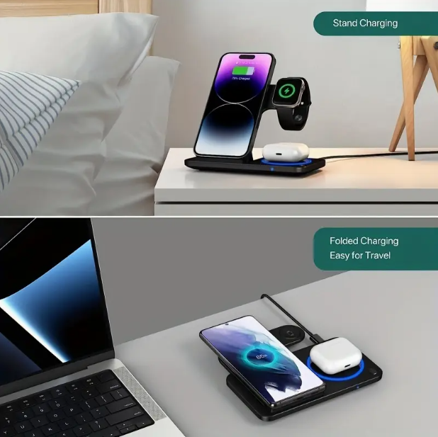 Revolutionise your daily routine with the AppleHub Pro β the foldable, wireless 3-in-1 charging station that blends smart design, cutting-edge technology, and ultimate convenience. Designed for discerning Apple users, the AppleHub Pro is compatible with iPhone 16 to 12, Apple Watch (up to Series 10), and AirPods, offering fast wireless charging, an adjustable ambient LED light, and a foldable phone stand.